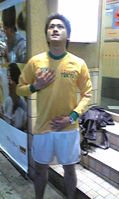 「若者の聖地渋谷にて、国歌斉唱するダイヤモンズの岸タク」